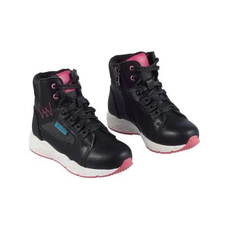 Детские ортопедические ботинки ORTMANN Homs в практичном сочетании кожи черного цвета и розовых элементов декора.
