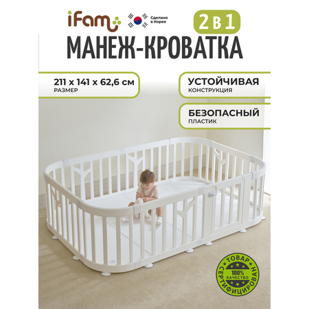 Детский манеж-кроватка 2 в 1 iFAM Birch Round, белый