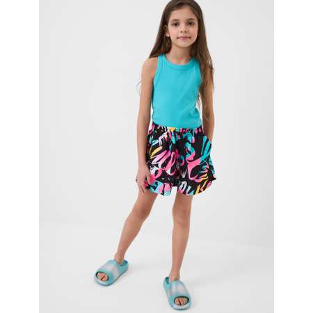 Яркие плавательные шорты для девочки подростка. Шорты средней длины, с удобной посадкой и эластичным поясом, который дополнен шнурком для регулировки. По бокам — удобные карманы. Внутри — лёгкая сетчатая подкладка. Дизайн выполнен в стиле уличного граффити: чёрная основа с цветными надписями и мазками неоновых оттенков — розового, голубого, жёлтого и белого. Идеальны для пляжа или бассейна.