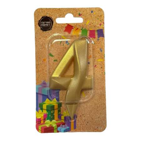 Свеча-цифра для торта Свечной маркет украшение в виде цифры 4, 7 см, на ножке