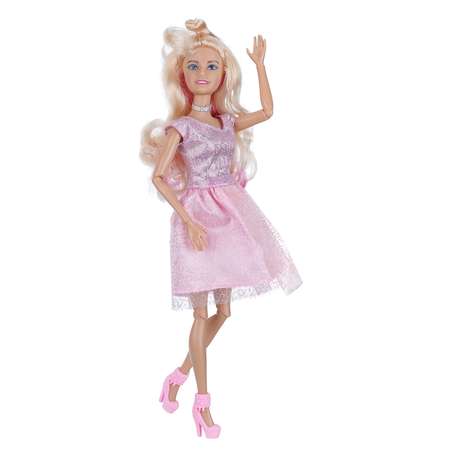 Модница София одета в симпатичное платье в нежно-розовых тонах с верхом из блестящей ткани и короткими рукавами, что подчеркивает её романтичный весенний образ. Низ платья представляет собой пышную юбку-солнце с легким узором, придающим наряду воздушность и особый шарм. На ногах — изящные розовые туфельки на каблуках, завершающие нежный и элегантный образ Софии. С такой модной куклой девочке будет интересно и весело играть: благодаря тому, что руки и ноги куклы подвижны, им можно придать любое положение. У Софии длинные красивые волосы, которые хозяйка куклы сможет собирать в разнообразные причёски. Детально проработанный дизайн вдохновит девочку на множество увлекательных игровых сюжетов.