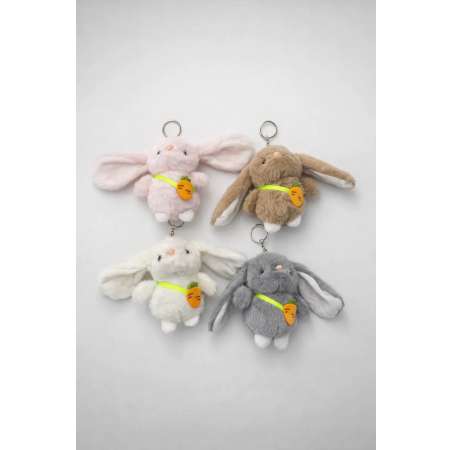 Брелок зайка - модный, красивый, современный брелок для ключей, послужит отличным подарком. Милый плюшевый зайчик с карабином может использоваться как подвеска на рюкзак, на школьный портфель или на сумку и будет любимым детским аксессуаром. Длина: 15 см.