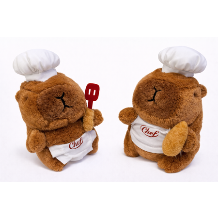 Мягкий брелок-капибара в образе повара — милый аксессуар с характером. Добавит настроения и станет ярким акцентом на ключах или сумке. Длина: 15 см.
