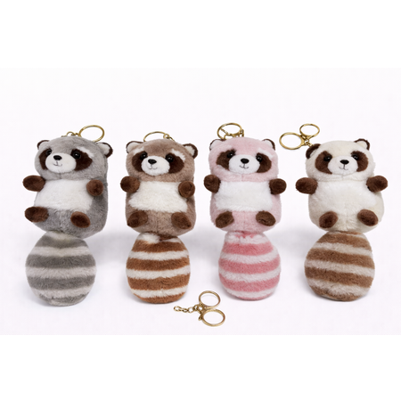 Очаровательный брелок в виде енота с мягкой текстурой и пушистым хвостиком. Привлекает внимание и добавляет уюта в повседневные аксессуары.