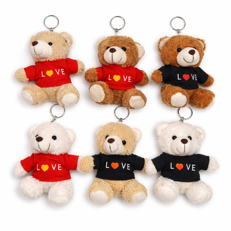 Очаровательный плюшевый мишка в футболке — стильный и приятный на ощупь аксессуар. Добавит уюта и настроения в повседневной жизни. Отлично подойдёт для ключей, сумки или рюкзака. Длина: 13 см.