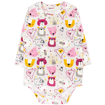 ✔ Милый принт в виде симпатичных мордашек мишек на однотонном светло-сером фоне в разноцветный горошек делает эту модель современной и яркой.