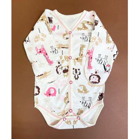 Боди детское, розовое, Африка, для новорожденных, для девочки, из хлопка, с длинным рукавом, на кнопках, нательное, бельевое, с ярким принтом, с животными, с жирафами, с львами.