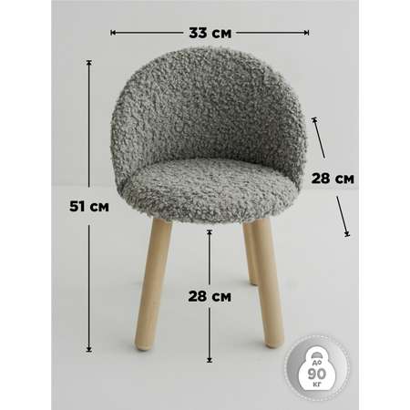 Идеальный выбор для мальчиков и девочек от 1,5 до 4 лет! Мягкий стульчик в обивкe «бapaшeк» станет отличным подарком для вашего малыша с первого годика. Материал стула велюр букле. Ножки изготовленны из массива берёзы. Высота ножек 24,5см, высота с сидением 28см. Общие габариты: 28х33х51 см.