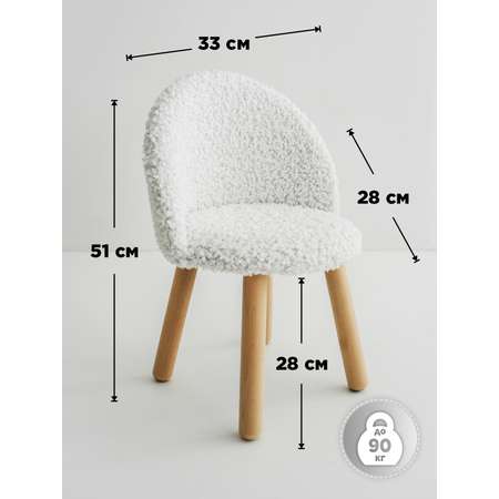 Идеальный выбор для мальчиков и девочек от 1,5 до 4 лет! Мягкий стульчик в обивкe «бapaшeк» станет отличным подарком для вашего малыша с первого годика. Материал стула велюр букле. Ножки изготовленны из массива берёзы. Высота ножек 24,5см, высота с сидением 28см. Общие габариты: 28х33х51 см.