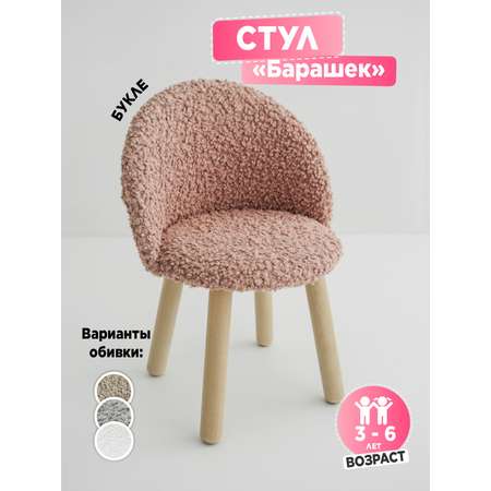 Идеальный выбор для мальчиков и девочек от 3 до 6 лет! Мягкий стульчик в обивкe «бapaшeк» станет отличным подарком для вашего малыша с первого годика. Материал стула велюр букле. Ножки изготовленны из массива берёзы. Высота ножек 28,5см, высота с сидением 32 см. Общие габариты: 30х35х55 см.