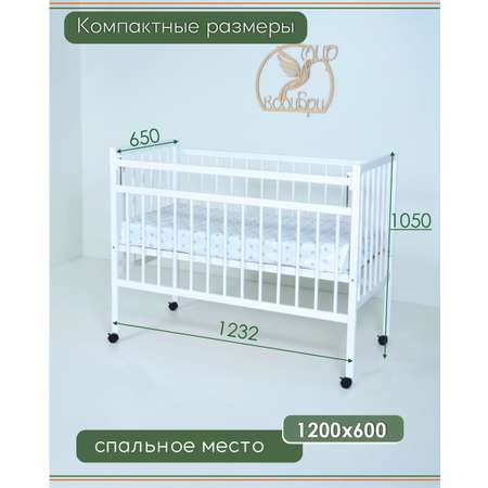 Детская кроватка Wloo на колесиках с механизмом опускания, без маятника (белый)