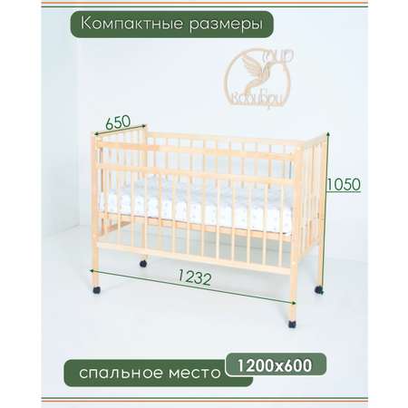Детская кроватка Wloo на колесиках с механизмом опускания, без маятника (береза)