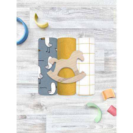 Пелёнка Mjolk Чайки/Mustard/Клетка трикотаж 80х80 см 3 шт.