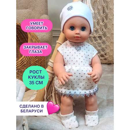 Детская кукла пупс Олеся 35 см. Реалистичная кукла умеет говорить и сидеть, глаза закрываются. Производство Беларусь. У куклы качественная съёмная одежда. Кукла изготовлена из полимерных материалов.