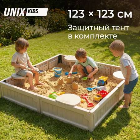 Цена на Песочница детская UNIX Kids квадратная 123х123 см пластиковая - 21780 ₽.