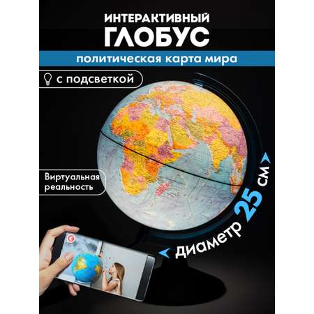 Глобус Globen интерактивный политический с подсветкой и VR очками диаметр 25 см