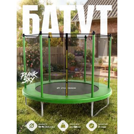 Уличный детский батут PLANK SKY 10 ft (305 см), каркасный с внутренней сеткой, без лестницы.