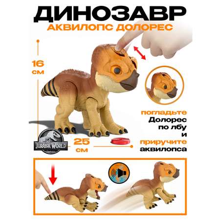 Встречайте верного друга из фильма «Мир Юрского периода: Возрождение» — интерактивного Аквилопса, вдохновлённого историей Изабеллы и её доисторического компаньона. Этот дино не просто игрушка —он умеет дружить, защищать и даже есть лакомства!