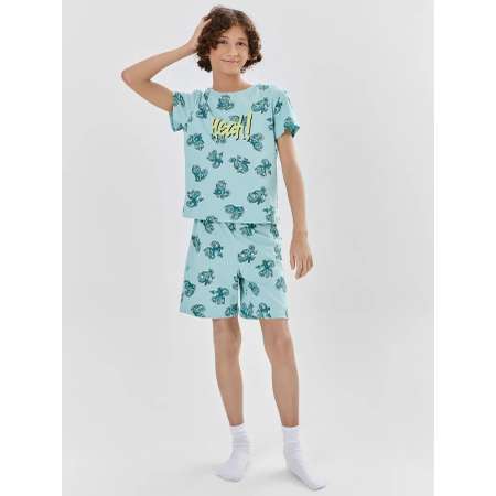 Этот яркий комплект в освежающем голубом оттенке с оригинальным принтом «Хамелеоны на морских берегах» — воплощение современного дизайна и абсолютного комфорта. Трендовый силуэт oversize со спущенной линией плеча у футболки и свободные удлиненные шорты обеспечивают полную свободу движений, позволяя ребенку быть активным днем и полноценно отдыхать ночью.