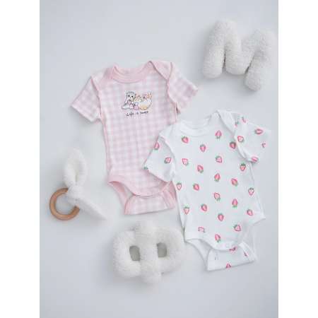 Стильный дуэт: В наборе представлены две дополняющие друг друга модели — нежная розовая клетка и изящный принт. Цвета сохраняют свою яркость даже после многочисленных стирок.