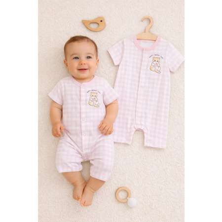 Подарите своему малышу ощущение абсолютной легкости с нательным полукомбинезоном (песочником) от легендарного белорусского бренда Mark Formelle. Этот комбинезон для девочки в нежно-розовую клетку на белом фоне создана специально для самых маленьких, сочетая в себе безупречное качество материалов и продуманный до мелочей дизайн.