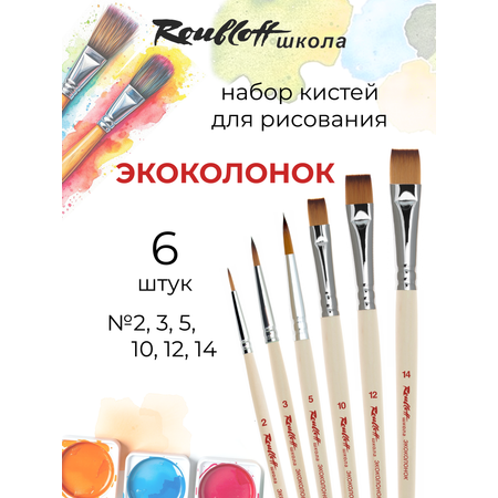 Набор кистей для рисования для школы Roubloff, 6 кистей из эко колонка (синтетика, имитирующая колонка). Набор для школы включает кисти для рисования: