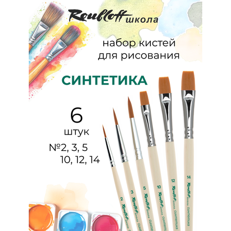 Набор кистей для рисования для школы Roubloff, 6 кистей из синтетики. Набор для школы включает кисти для рисования: