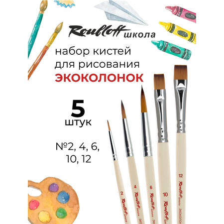 Набор кистей для рисования для школы Roubloff, 5 кистей из эко колонка (синтетика, имитирующая колонка). Набор для школы включает кисти для рисования: