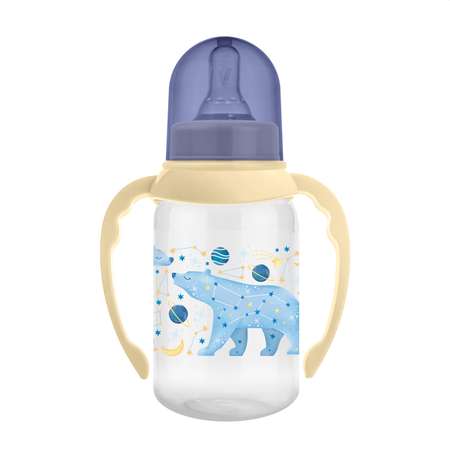 Ручки бутылочки фиксируются при помощи кольца, благодаря чему они неподвижны, что позволяет малышу самостоятельно держать изделие. Бутылочка имеет герметичную крышку, заглушку и комплектуется силиконовой соской со средним потоком. Оснащена выпуклой мерной шкалой с удобным шагом - 30 мл. Нестираемая шкала на стенке бутылочки позволяет приготовить необходимое количество питания. Бутылочку можно стерилизовать в кипящей воде или паровом стерилизаторе.