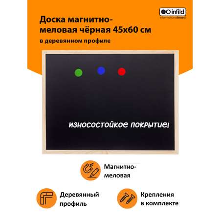 Доска магнитно-меловая 45х60 см черная в деревянном профиле, INFILD