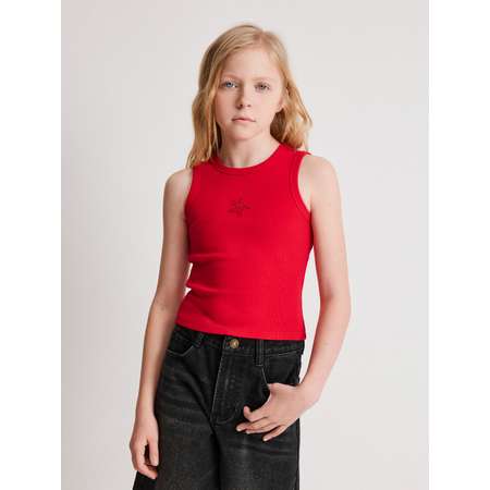 Детская майка-топ с открытой спиной для девочки-подростка представляет собой оригинальную и стильную модель для создания летних образов. Трикотажный топ выполнен из эластичной и дышащей хлопковой ткани, которая подходит для длительного ношения в жаркий летний день. Красная майка украшена рисунком из стразов, складывающихся в изображение морской звезды, который добавляет образу блеска и утонченности. Модель c горизонтальным вырезом по спинке смотрится стильно и оригинально, а также комфортно носится в жаркую погоду. Стилизуйте топ со свободными бермудами из денима, чтобы составить запоминающийся образ на каждый день.