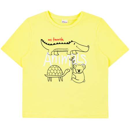 Яркая футболка для детей c коротким рукавом из 100% хлопковой кулирки солнечно-желтого цвета с забавным принтом африканских животных. Универсальная модель с короткими рукавами подходит как для мальчиков, так и для девочек, идеально сочетаясь с любой одеждой.
