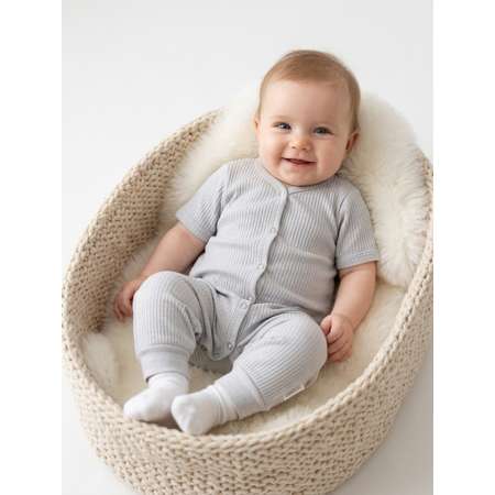 - Удобный крой с открытыми ножками: Продуманная конструкция обеспечивает свободу движений и идеально подходит для детей, активно познающих мир. Комбинезон удобно надевается под памперс, не требуя полного переодевания.
