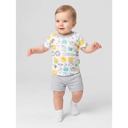 Костюм для младенца с шортами и футболкой с коротким рукавом подойдет как для дома, так и для прогулок. Яркий принт добавит настроения, а удобные кнопки на застежке облегчат переодевание.