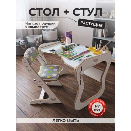 Комплект мебели Babystul Стол+стул+подушки звезды серые