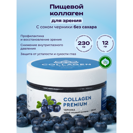 Collagen Premium натуральным соком черники – гидролизованный коллаген для поддержания здоровья глаз. Продукт с высокой биоактивностью и целостной молекулярной структурой при приеме внутрь обеспечивает следующие эффекты: