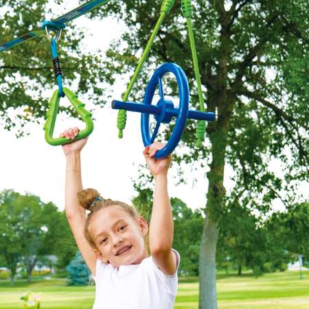 Превратите свою полосу препятствий в настоящий вызов с колесом баланса Ниндзя: Колесо баланса для полосы препятствий. Этот элемент, позволит участникам испытать свои силы, отточить координацию и равновесие. Суть задания — использовать вращательное движение колеса, чтобы забраться на полосу препятствий или сойти с неё. Сначала участник стабилизируется с помощью средней перекладины, затем, ухватившись за колесо обеими руками, может раскачиваться вперёд и назад, осваивая технику полёта.