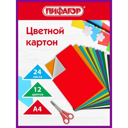 Цена на Цветной картон Пифагор 12 лист. - 424 ₽.