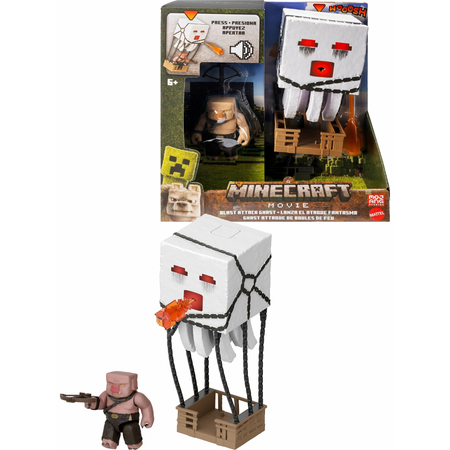 Пройдите через портал и окунитесь в полный приключений мир фильма «Майнкрафт» с этим набором фигурок летучих гастов! «Взрывной гаст» демонстрирует захватывающий момент из фильма, когда злые свинолюди приковывают гастов и используют их в качестве боевых машин. Нажмите на верхнюю часть фигурки гаста, чтобы услышать свист и звуки битвы, включить подсветку и запустить снаряд. В набор входит один воин-свиночеловек и один взрывной снаряд, чтобы воссоздать сцену прямо из фильма. Забавный подарок в стиле фильма для любителей Minecraft от 6 лет и старше. Цвета и декор могут отличаться. Батарейка в комплекте (LR44).
