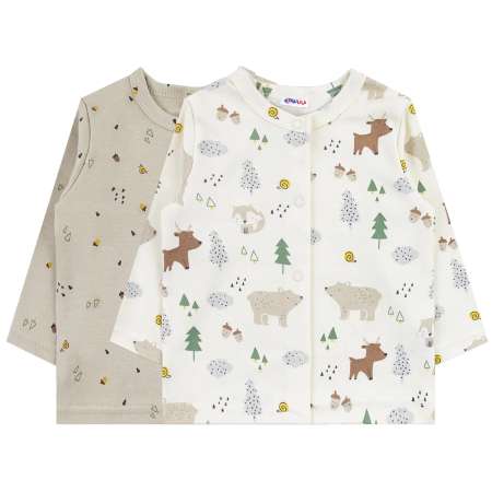 Этот уютный комплект одежды включает в себя две кофточки из мягкого и дышащего интерлока, идеальные для малыша. Распашонка для новорожденных из 100% хлопка на кнопках обеспечивает комфорт и безопасность для нежной кожи малыша. Нежная базовая кофточка из 100% хлопкового трикотажного материала создает комфорт ребенку и идеальную вентиляцию за счет натурального состава. Каждая кофта с удобной застежкой на кнопки, облегчающей переодевание. Принт в скандинавском стиле с животными и лесными мотивами добавляет очарования и уникальности этому комплекту. Удобная застежка на кнопках, расположенная по центру изделия, делает переодевание ребенка быстрым и не доставляющим никаких хлопот. Цвет бежевый с натуральными оттенками молочного, кофейного, светло коричневого и природных желтого зеленого в качестве цветовых акцентов делает этот комплект универсальным и легко сочетаемым с другими предметами гардероба малыша. Пусть ваш малыш окунется в мир природы с этим стильным и уютным комплектом кофточек в скандинавском стиле! Сочетайте с однотонным и контрастным низом в монохроме из нашей базовой коллекции для создания интересных образов.