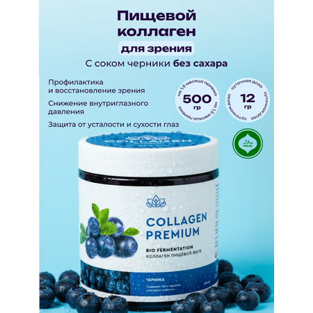 Collagen Premium натуральным соком черники – гидролизованный коллаген для поддержания здоровья глаз. Продукт с высокой биоактивностью и целостной молекулярной структурой при приеме внутрь обеспечивает следующие эффекты: