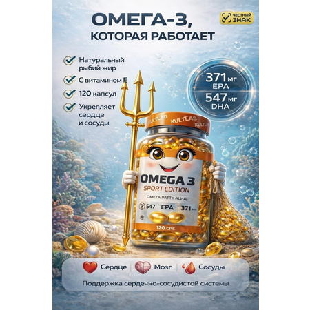 Цена на Витамины для сердца Kultlab Омега 3 1350 мг - 1400 ₽.
