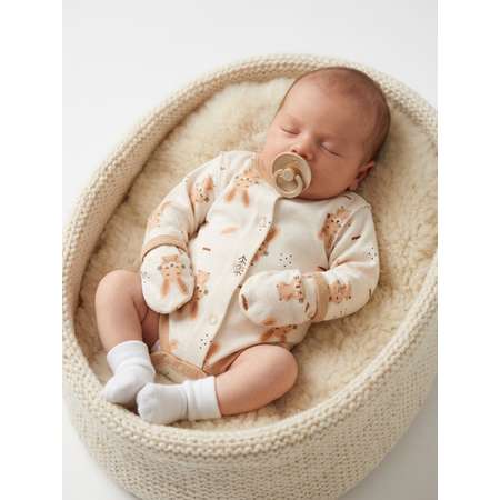 - Легкое переодевание: Удобное расположение кнопок (застежка снизу) обеспечивает быстрый доступ к пеленанию и смене подгузника.