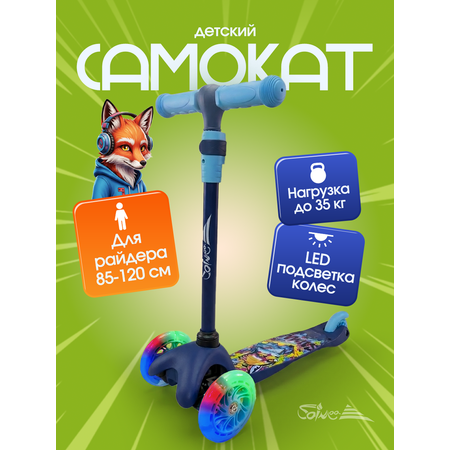 | Конструкция самоката: | с регулировкой руля, со светящимися колесами |