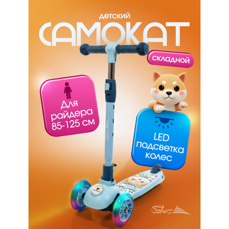 | Конструкция самоката: | складной, с регулировкой руля, со светящимися колесами |
