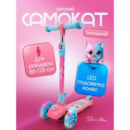 | Конструкция самоката: | складной, с регулировкой руля, со светящимися колесами |