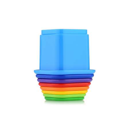 Детям понравится вставлять стаканчики друг в друга, делать с их помощью куличики и отпечатки (дно каждого стаканчика имеет разный рельеф), наливать в них воду и наблюдать как она вытекает.