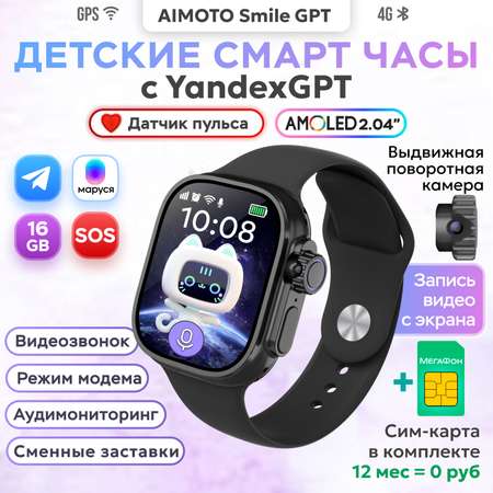 Детские смарт часы YandexGPT + SIM-карта AIMOTO Smile с YandexGPT черный