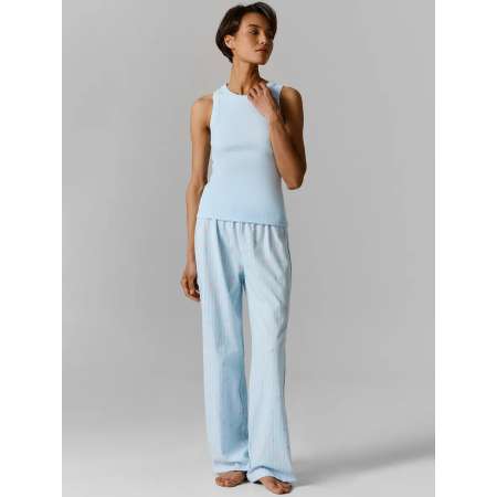 Штаны: Длинные штаны в голубую полоску с комфортной резинкой идеально сидят на бедрах.