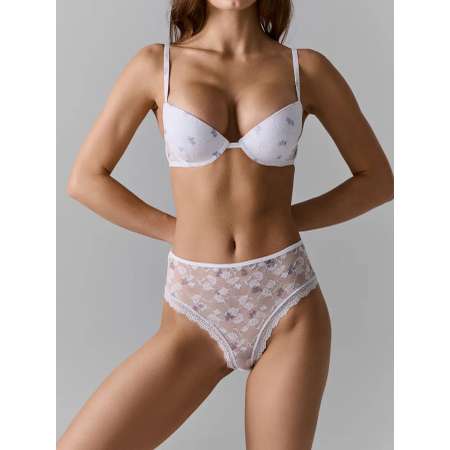 Изысканное кружево и вышивка: Изделие выполнено из высококачественного кружевного полотна. Чашка с вытачкой и нежный цветочный принт добавляют образу особого шарма, легкости и весеннего настроения.
